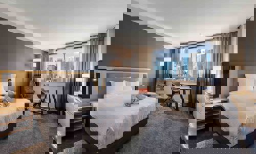 悉尼达令港宾乐雅酒店位于悉尼市中心,提供340个客房,包括豪华套间、标准套间和可自由出入的会员俱乐部。这里地理位置得天独厚,毗邻悉尼主要旅游景点,步行即可到达悉尼港、餐厅、海港大桥和维多利亚女皇大楼。此外,这里位于悉尼中央商务区,可以方便快捷的到达机场。