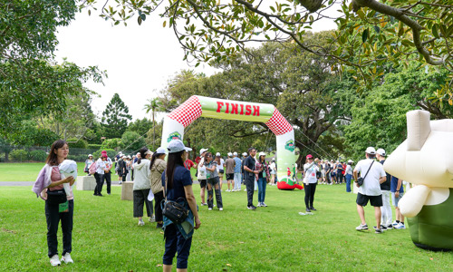 客人在皇家植物園塔皮恩草坪的終點線受到了熱情的歡迎,現場有豐富的餐車、娛樂和獎勵活動。天空中展示的信義品牌的空中寫字結束了這一天的活動。
