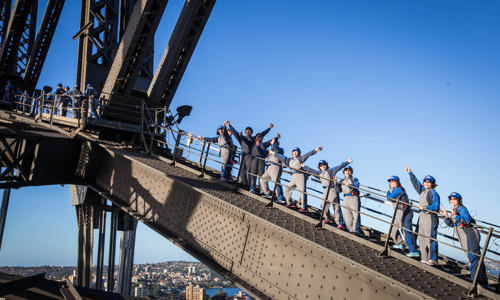 这是真正令您难忘一生的体验!攀登矗立在海港134米之上的世界最高的钢拱桥—悉尼海港大桥,它被悉尼当地人亲切的称为“衣架”。专业攀登引导员将带您登上这座建筑工程奇迹的中心,和您分享大桥悠久的历史,并为您的团队拍摄集体照片。